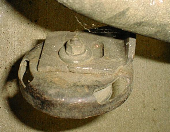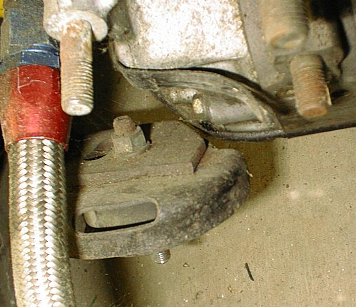 He can possibly use the oil pan, depending what car it came from. Just remove the pan, heat it up with a torch, and work it into shape to clear the suspension. The ears on the stock 12A front mount are not long enough to drill another hole. He needs to extend the mount by welding some extra steel to the end and then drilling. Here is a pic of the mount mod.