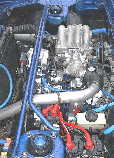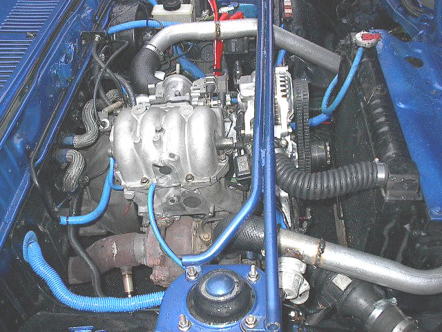 After over a year, with alot of help from my friend Guch, I finally got my car back on the road. The Turbo conversion is amost complete. Just getting the bugs worked out on it. What little bit that I've gotten to drive it so far, the only thing that I can say it is going to be FAST. Can't wait.