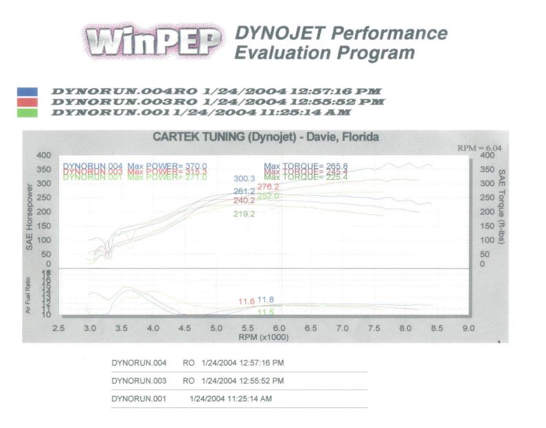 Here is the Dyno sheet with all three runs: