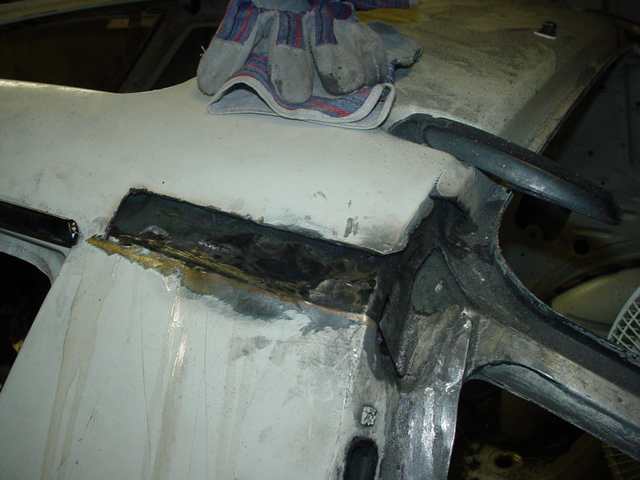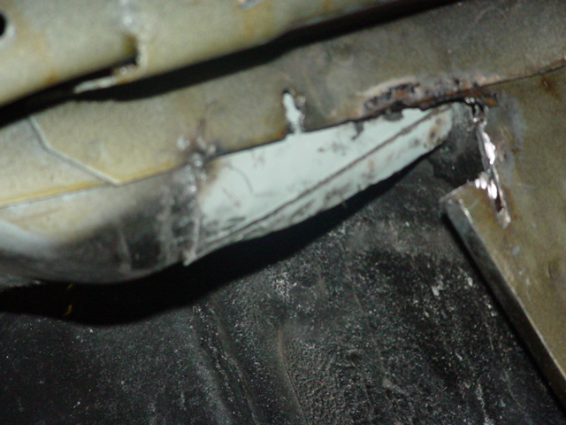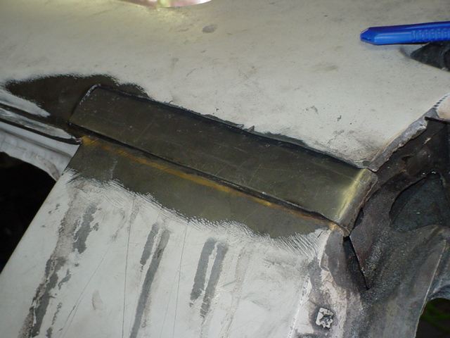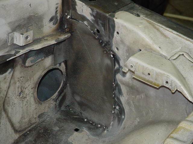 This is one side of the rear wheel rust removal. Its stiched welded in. tack tack tack tack between tack between tack tack tack, etc I have to grind it down then fill in any bits i missed.
