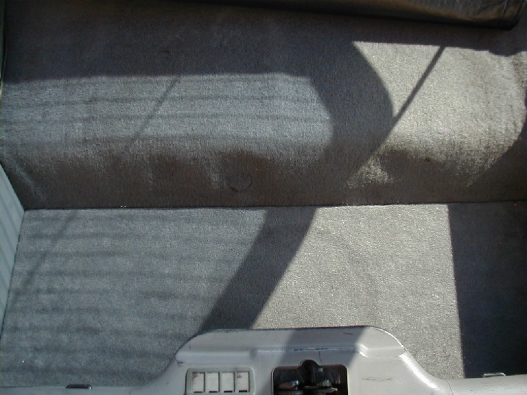 The slight depression on the previous photo is where the carpet is glued to the grill. After 5 years of carrying groceries you could notice the circle. The carpet and grill are glued to another piece of MDF you can see at the top of this photo that covered the box. This box built, installed and carpeted cost me $150 CDN.