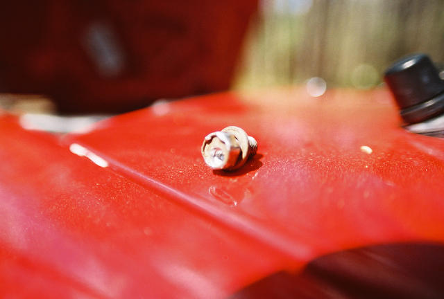 Two weeks ago I came home from school (45 mins from where I live) and only had time to get 3 shocks/springs done, so the last one remained. Well, I tackled it today and stripped two bolts (the heads) in the process. It was fun running around for 2 hours trying to find the correct size. I finally found the right headsize and thread but wrong length, so I had to cut it to fit. One bolt held the caliper to the backing plate and the other the shock tower to the control arm.