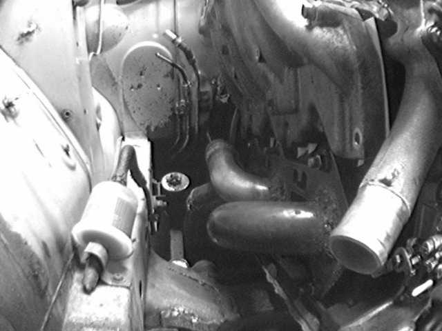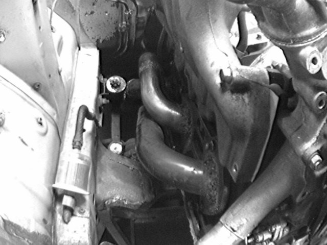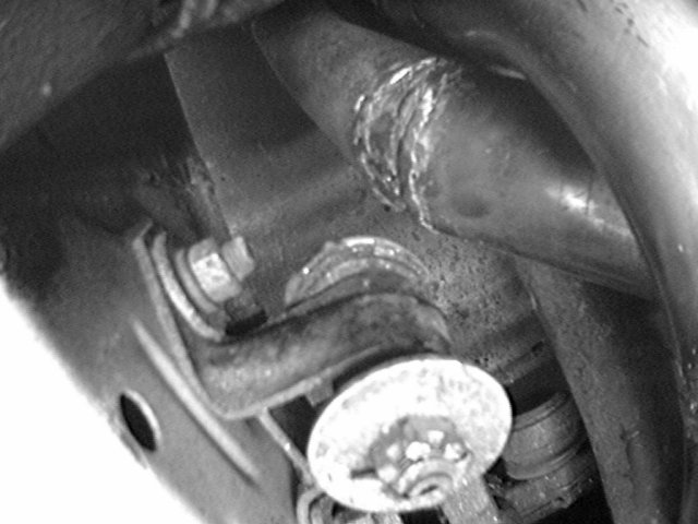 16 In this pic, you can see the idler arm to the top and middle of the pic, the rear and middle pipes to the left, and the fuel lines at the bottom.