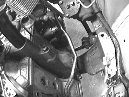 Here you can see the OMP lines are hooked to the carb and the lower radiator pipe is at a bad angle that points it right at the motormount. If only I had some brazing experience. I don't want to learn on this radiator. I don't have a decent torch either.