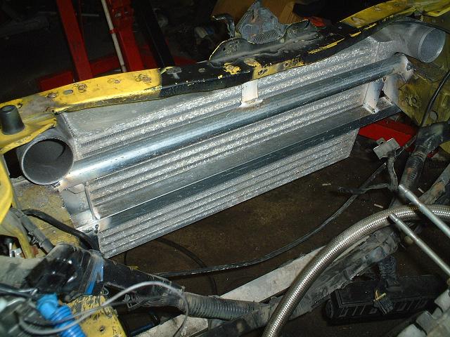 I cut out most of the core support and welded back in reinforcment so that I can mount the intercooler where I want it and welded all the intercooler mounts to the reinforcments..