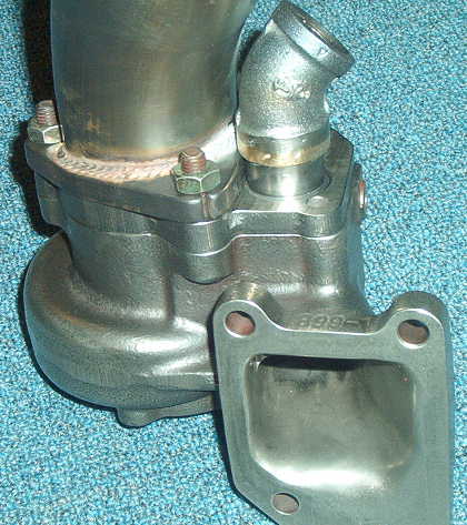 Now for the good stuff. No more boost creep. This is the hole I had to bore for the external wastegate. Big, huh?