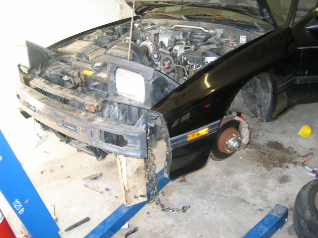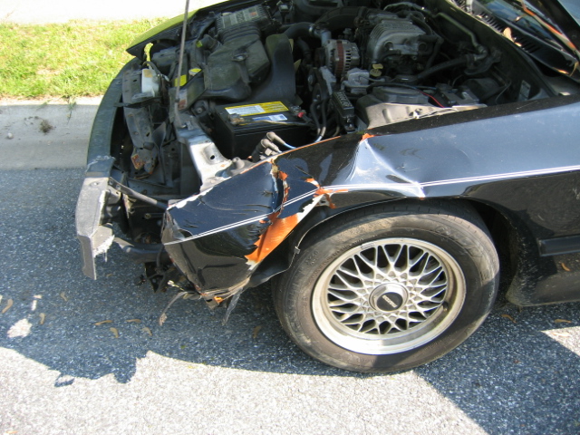 Drove 40 miles to get the car, Kid had told me about it over AIM the other night, car is a 1988 vert, 5 speed, like new leather seats, has a good top, and the radio does not work he says, he wants $500 for it, runs and drives with the damage you see posted above.