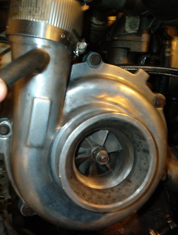 Next pic...the garrett turbo he's using...4" inlet and 1.1AR(correct me if I'm wrong Jon..) peak PSI around 4400 RPM..