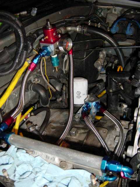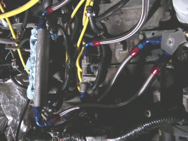 After 5 days of watching tv, working, eating, sitting around, runing out to the shop for more parts, and working ont he car; i'm almost done with my fuel mod. Should be done tommorow after i get a piece of fuel injection hose to do the fine connections using barb ends.