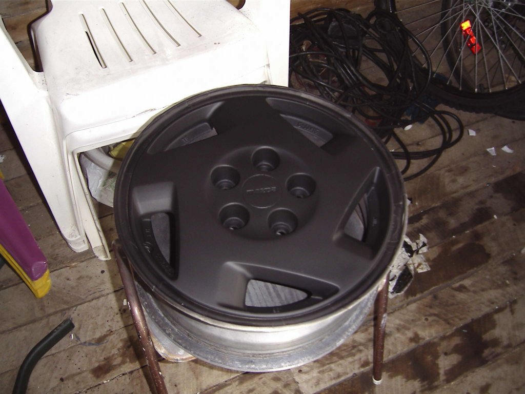 In a couple hours I'll show you what they look like with a clear coat and with the masking tape off covering up the rim.