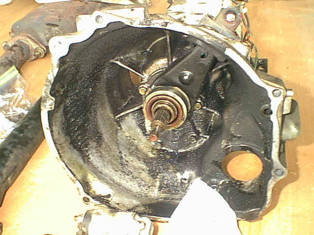 just a oem one from autozone, its only 145 bucks and im jobless at the moment, i could order a stage 2 from clutch masters but i gotta do the reasonable thing right now,carpayment,insurance,rent,various other clutch components, i ordered the front and rear oil seals from mazdatrix as well as the pilot bearing and seal,upper and lower shift rod bushings(mine were gone!)and then pressure plate,clutch disk,throwout bearing, i should be good, i spent 45 bucks on 5 quarts of AMSOIL for my tranny,its the best, does anyone know if the inside of the bellhousing normally has all that crud in it? is that because the inner seal is bad? thanks for the help,later