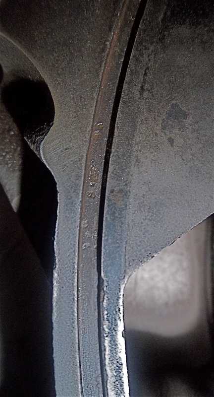 Pitting in water seal groove floor.