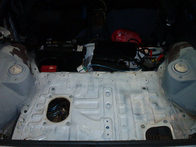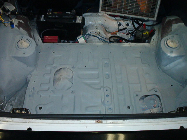 Some of you may have seen pengaru's pics..well, we just finished up the same thing on Roadkill669's car. He had already had the tar removed from a while ago when we took the rear carpet, speakers, etc out. Now we finished removing the rear speaker towers. Drilled the spot welds out, welded in the holes, grinded down, primered then paint. All good again and looking 10Xs better..