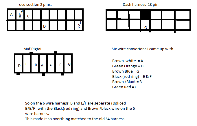 so i got out the multi meter and mapped the 7 wire harness to the ecu pins and made sure that the new harness behaved the same.
