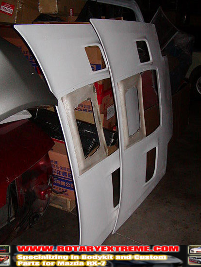 Is there any way to move the center scoop forward about 6 - 12", If you did that I think it would be slammin. Other than that its still looks pretty cool, but i'd rather have the center scoop serve a purpose than be decorative. Most people don't have allot of money to dress up there cars IMO, I think that thats one of the reasons they buy the rx7 because it really doesn't matter whether you have a body kit or not. It looks good either way.