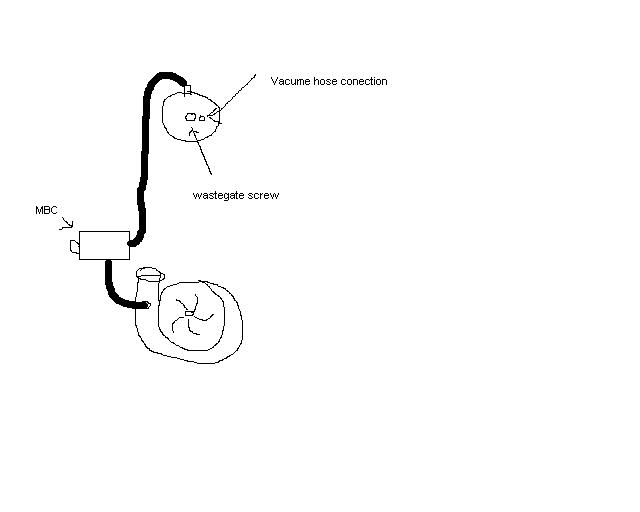 Ok i have a 62-1 and a Turbonetics Deltagate II wastegate. I know it's too small. But last summer it would hold me steady at 12 psi. This summer i have boost creep like a ****. So i ran a stright line to my wastegate from my turbo and tonight i put a manual boost controler on it. Still over boosting after 4.5k rpm. Now i was told that i can add a vacume line to the end of the wastegate where there is a second vacume connection. I was told it helps it open and stay open. Now from what do i run a line to it? Here is a really bad pic of my setup.
