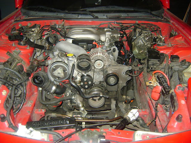 Haven't been around much the last few years. Moving, changing jobs a few times, having a kid, things like that have taken up my car forum time. I'm finally getting started on the teardown and rebuild of the R1. Other than driving from the old house to the new house, it's been sitting for most of the last 3 years. I'm going to upgrade the cooling system, with new radiator, new AST, new coolant lines, all in preparation of shifting to a FMIC, plus an aftermarket airbox and relocate the battery to behind the passenger seat.