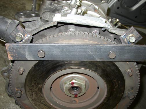 Well, here is a pic of the Flywheel stopper..just used some stuff I had laying around and its not complete yet. If enough people are interested in it I will use 1-1/2" angle and 1" strap. All material will be 1/4" thick and it will be supplied with its own bolts.