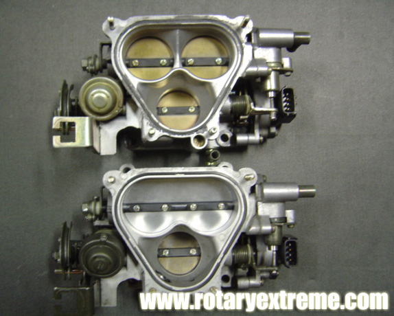 The top 2 ports are ported by 4mm in diameter and also the center part is machined out. That will make the total flow area increase by about 20%. A custom merged one piece butterfly plate replaces the stock ones. I can have stock upper intake manifold machined to match with the top ports.