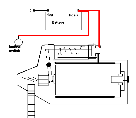 Here is how the starter works. you basically have 3 connections. The main connection from the battery to the starter soilinoid,the connection from the solionoid to the actual starter motor, and the "s" terminal wire that comes from the ignition switch. The wire from the battery has power all the time. When you turn the key to start the car 2 things happen in the starter, buth occour from 12v+ going to the "S" terminal. The first thing is it operates the soilinoid moving the plunger to engage the flywheel, at the same time the solinoid closes the contact between the wire from the battery to the wire on the started motor.