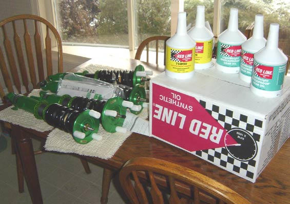 Just got finished cleaning & driving the car for the first time after the new suspention. Tein FLEX, while I was under there got some fluid for the tranny and diff. Install went smooth, getting the old crap off was kinda a pain but some kicking helped.