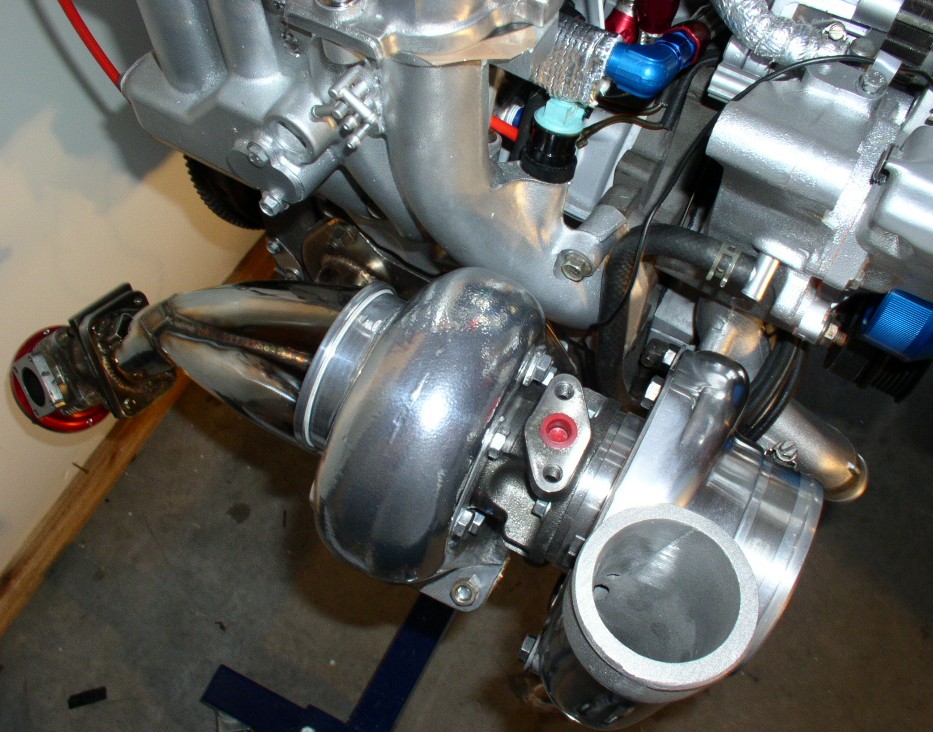 twins are almost off. i can't get the heat shield that runs between the block and the top of the turbos off. thats about the only thing keeping me from getting to the manifold studs. i'm sure i just wasn't looking hard enough though, i gave up on it after i burned out the shop light.