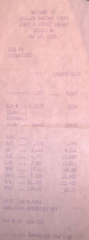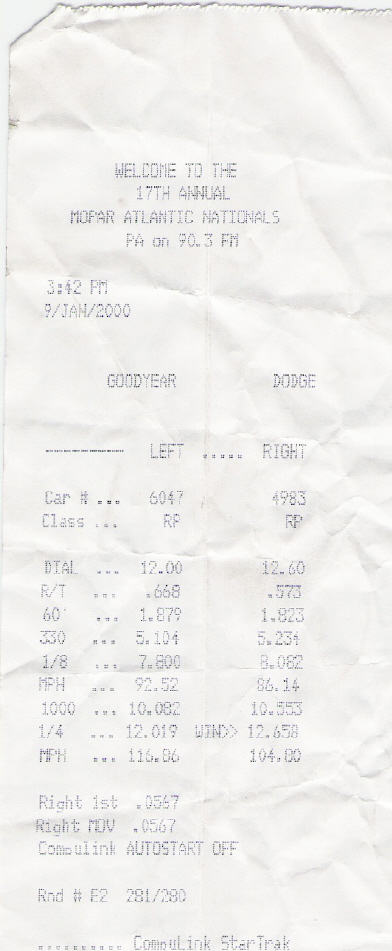 i ran 12.01 @116 on nitto tire's 555r's ...click lower rite side of slip to enlarge