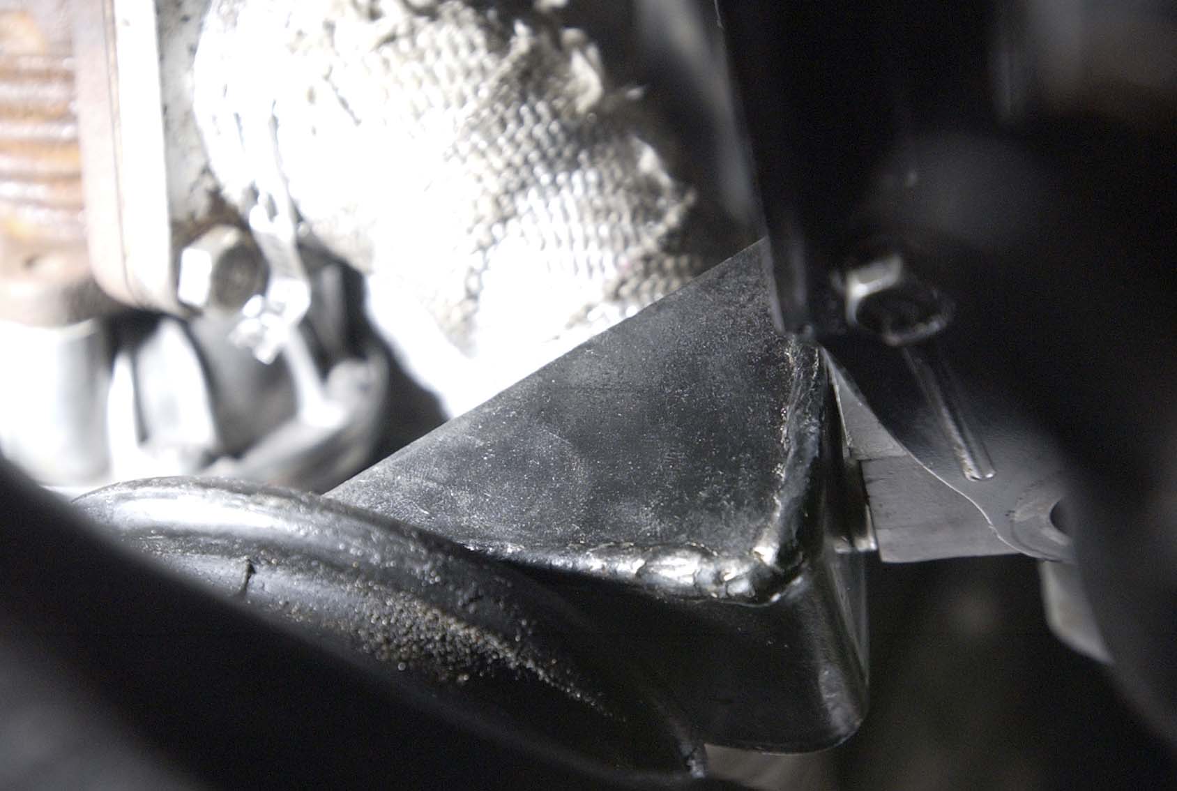 Another pic of the passenger's side, looking at it from the front of the car. you can't see where it extends forward and connects to the intermediate plate. Oil pan gets in the way.