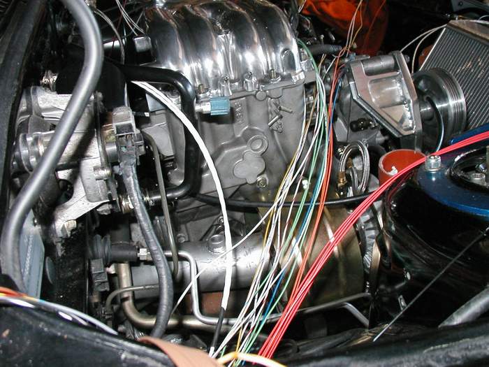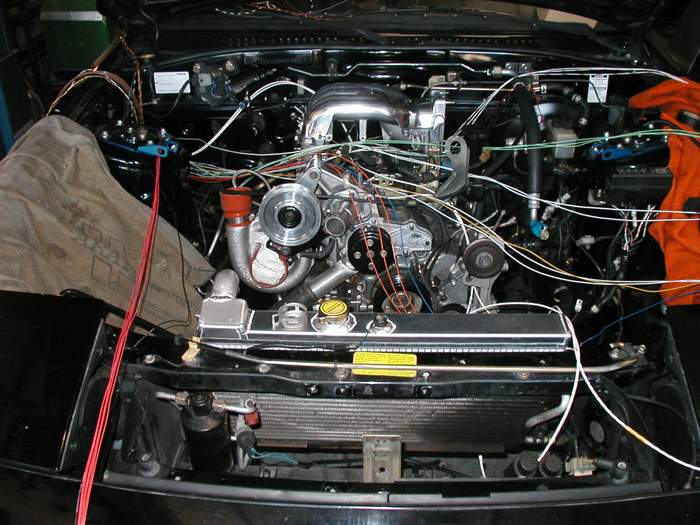 Yes that is a To4E I got it from Loi at Sportcarmotion he also set me up with 1300cc secondaries a blow off valve and the fluidyne. This pic shows the wiring for the Motec M-4 as well as the polished intake. The inside has been match ported and the throttle body has been ported as well as the secondary butterflies removed.