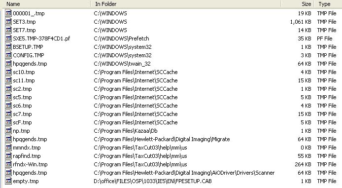 So you delete every .tmp file? I just did a search and came up with 21 matches. What is a .tmp file? In the attatched picture, are the files that my comp found while searching for .tmp