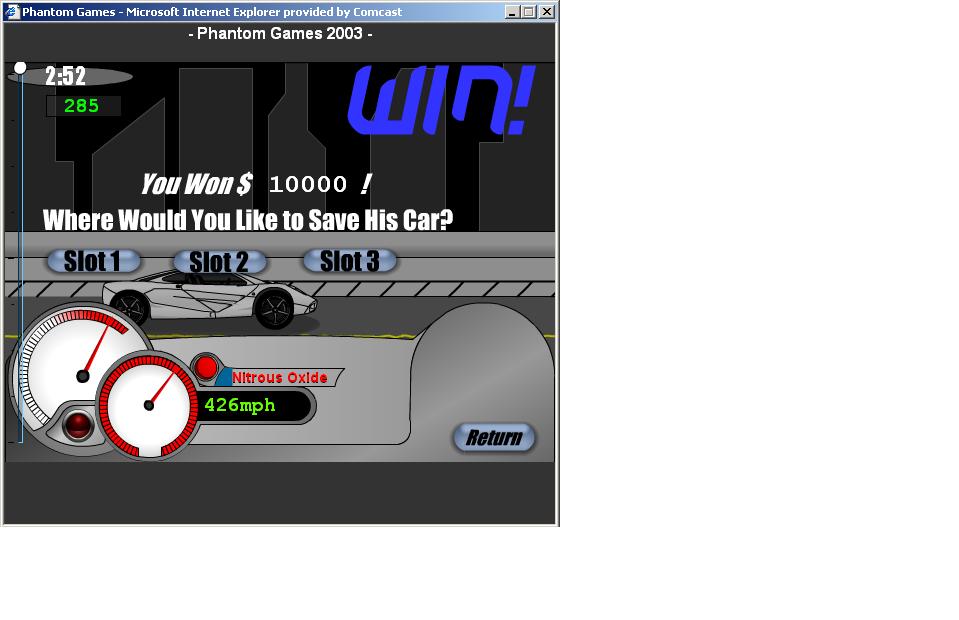 i'm bored covering at work. this is a online drag racing game found at http://www.phantomgames.net/ it pretty fun expecially when you start whoppin ***. i own a McLaren F1 and a F50 too. i think i'm gonna setup my Spirit R next