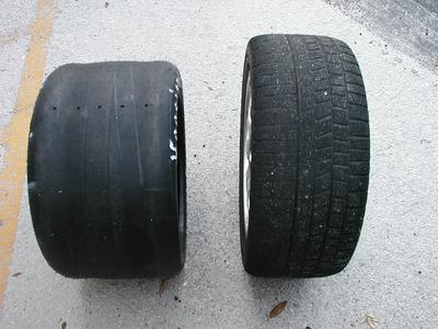 Here is a pic of my new tire next to the tires I got fastest time with. I hope to destroy all of them next time I see them.