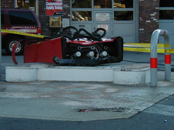Some Indian lady lost control of her car and decided the best thing to do would be to ram one of my gas pumps. Thankfully all the safety equipment worked properly and shut down the fuel, otherwise that would have been one hell of an explosion. I was inside the building when it happend, but I think I'll sue for mental anguish anyway :bigok:
