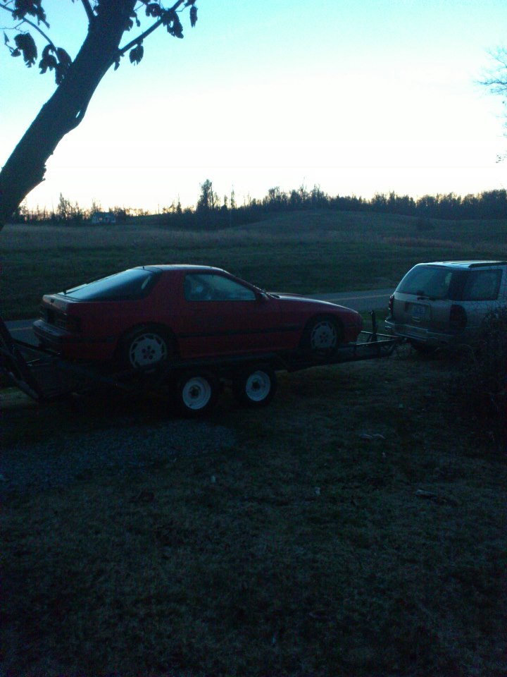 Got her home tonight and started tearing into it. Hoping to have her running again next week. Its funny how the rx7 looks bigger than the trailblazer in the picture too