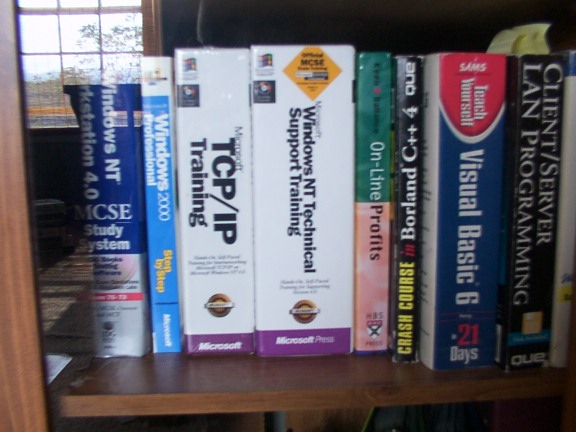 Ok, well our school had to get rid of some old textbooks(old as in 2002 stuff, lol) and they filled this entire classroom w/ hardware, books, software, etc...and told the students to just take it all, lol...so I gathered up some books I wanted and brought it home...I totaled up how much the books were worth...$935 give or take because some books weren't listed...thats almost $1K in books for FREE! I'm going back tom for some more stuff for myself and my friends....and I'll cut anybody in on the forum(since I noticed we have a bunch of tech guys here) PM what ya want, and I'll take 60% off the books price for you(gotta make a lil $$$, lol)...and you cover shipping...They have almost anything you can think of...including VB, Java, MSCE cert books, A+ cert books, just name it...