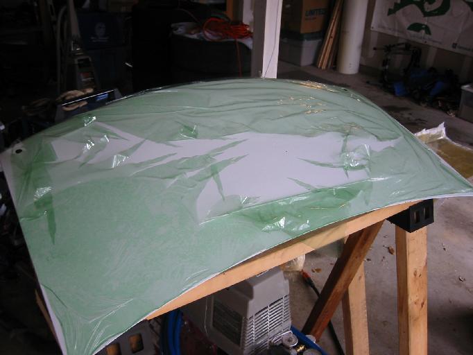 This is what the PVA looks like on the original trunk. I sprayed it on with an HVLP gun, in multiple thin coats... green.