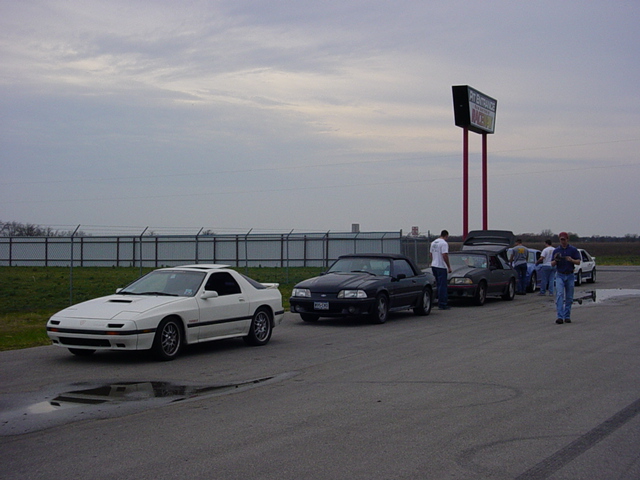 our cars lined up outside the track gate: