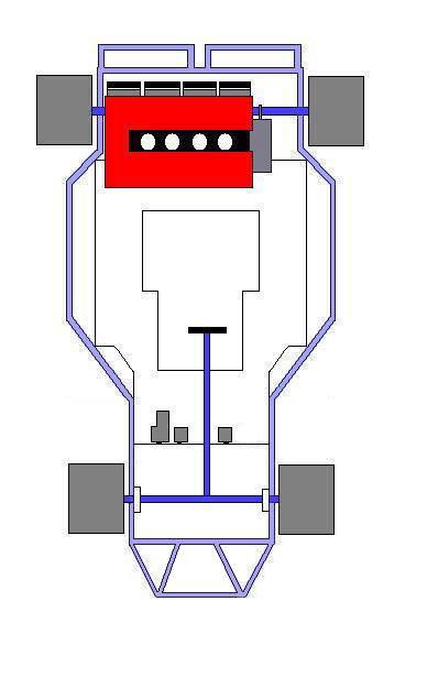 I have a design for a kart in mind, and have done up a VERY ROUGH sketch on MS Paint. I currently have a 550cc 4-cylinder Honda engine I am going to use, but if anyone has a spare 12A they could donate (in the NY/NJ/PA/OH area) I would be thankful...I would love to make it rotary but I dont have an engine layin around. Here is the rough sketch (the hand drawing looks better):