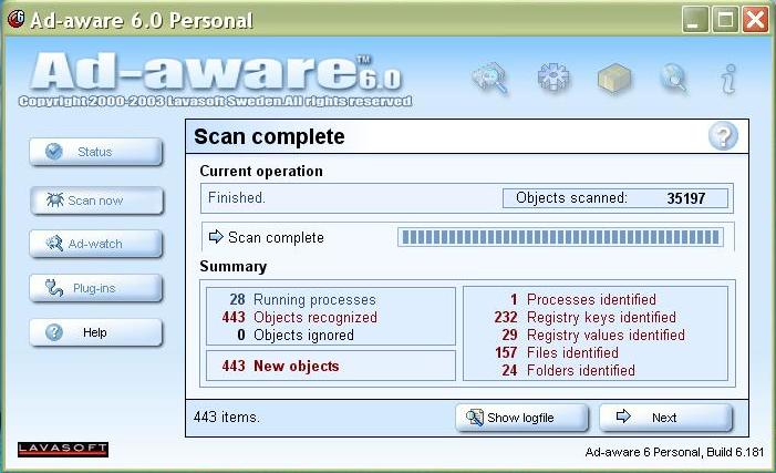 before i wiped i got ad aware to try and see if a spyware hi-jacked my DSL, and i had 2,137 instances....I-Mesh DAMN YOU!!!!! I'm afraid to check now...probably as many if not more, prolly y my latency spikes to 2k+ sumtimes on Counter Strike :P