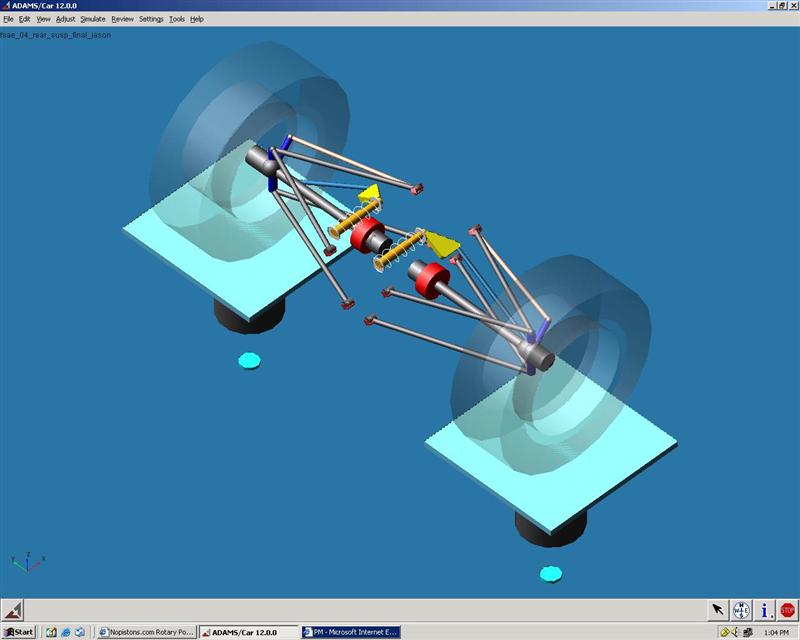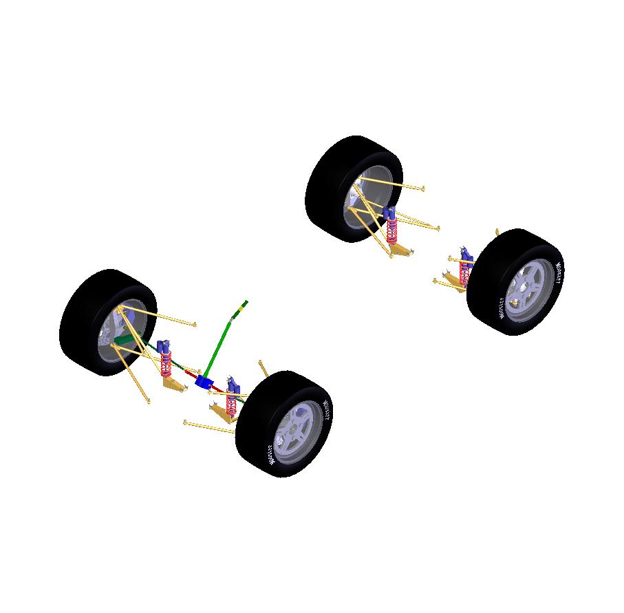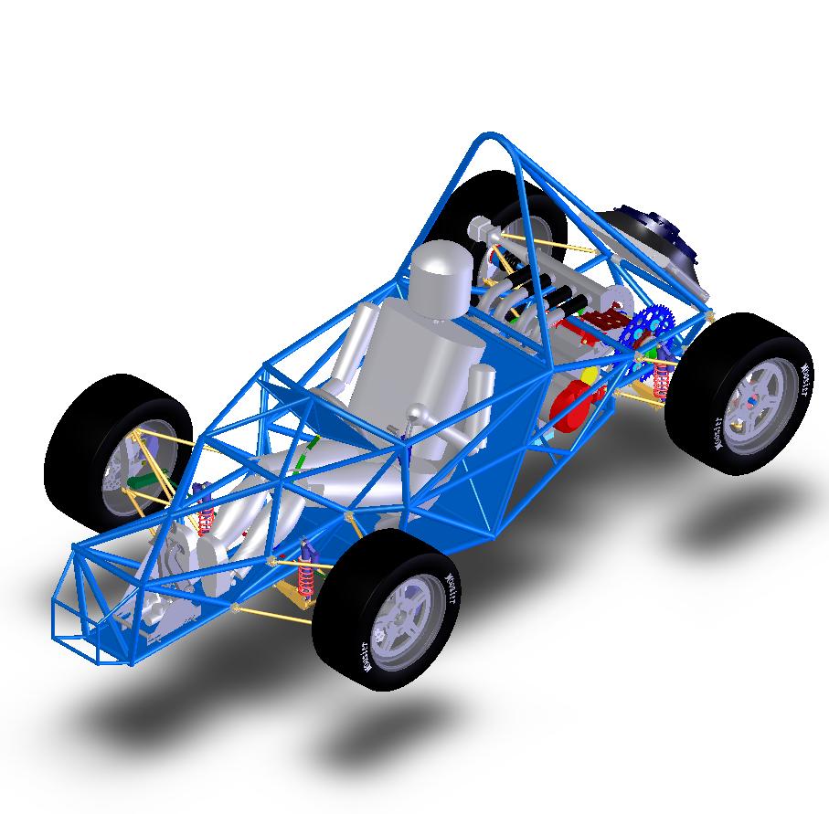 here's a pic of our car, and the main reason why i have had no life this semester. i designed the a-arms, rockers, drew the shocks, and set the car dimensions (wheelbase, trackwidths, roll centers, virtual swing arm lengths, etc).
