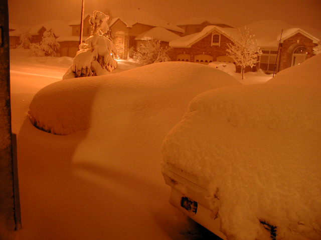 damn thats alot of snow!!!!! but its neat looking. i like snow. (thats because i live in florida and never have to see it. ) nice neighborhood. can i stay in your garage