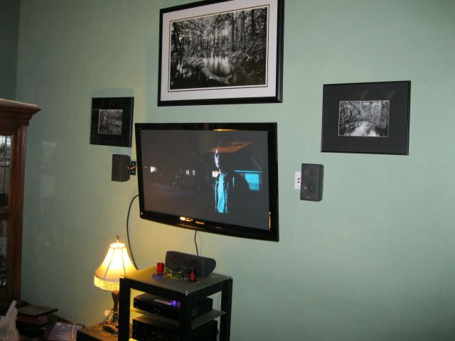 Tonight I'll be mounting the 4 surround speakers and wiring them to the jacks, and cleaning up more wires behind the shelf unit.