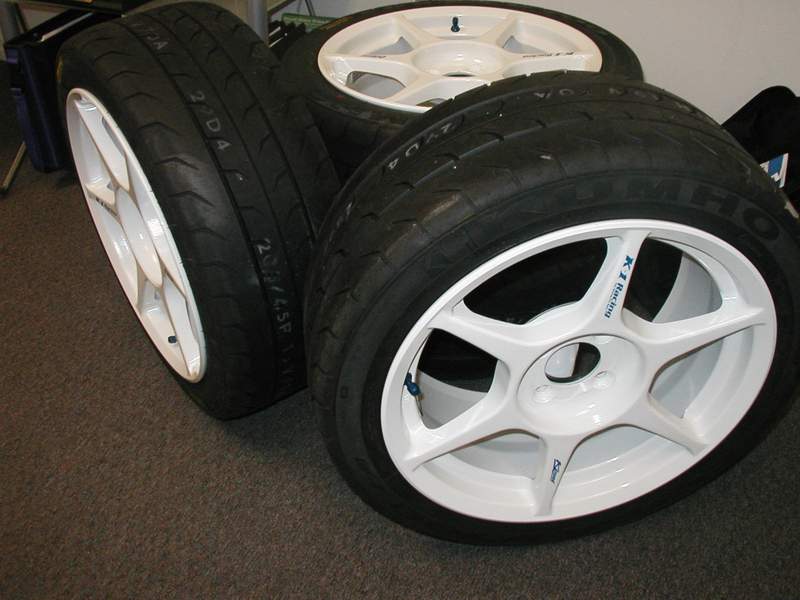 New toy for Jims. I had so much fun Autocrossing my Mini I decided to buy some Rims and Kumho Ecsta V-700's for it. I was faster than Mustangs with racing tires last time out and I was running the crappy/heavy run flats that come with the car.