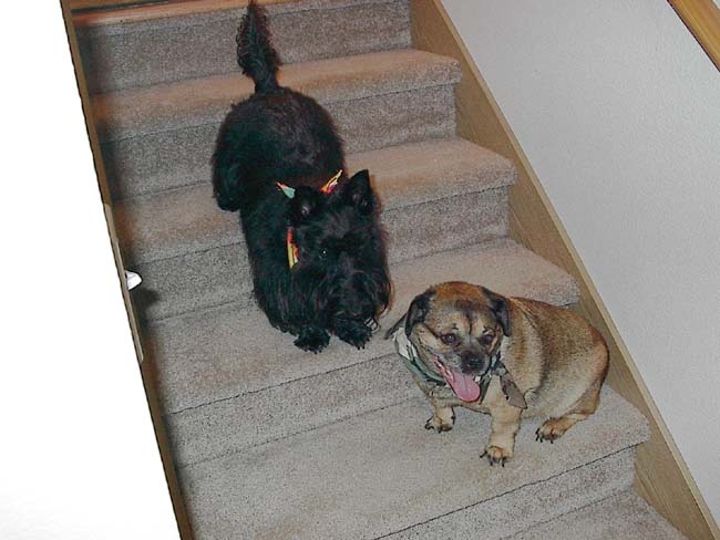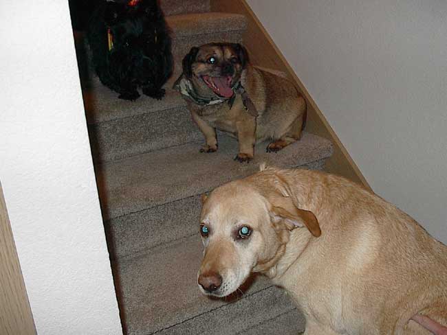 This is my other dog, Dritz. He's a pure bred Akita, AKC registered and everything. We got him for free cause someone abandoned him, the poor "little" guy. He's about 36 inches tall at the head (29 at the shoulder) and 105 pounds. All that size and he's not even 2 years old...