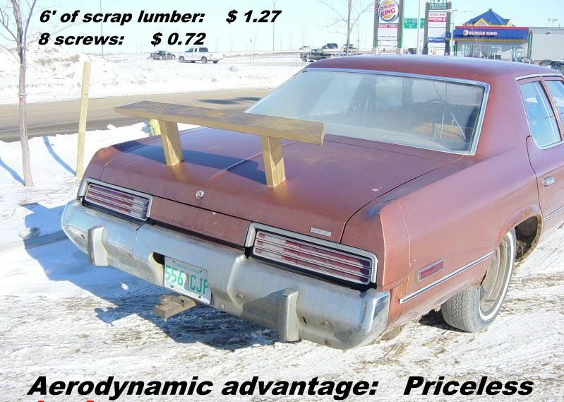 I just thought of a new theft deterant. Fab up some hideously fugly wings, make them able to attach with magnets. Park car, attach wing, repulse passers by.