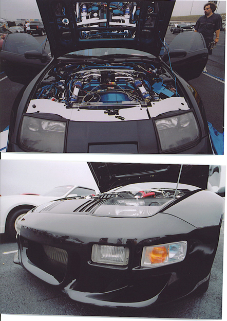 those are a couple pics of shawn(wagz) custom widebody 300zx with twin td-05/18g turbos.....769whp, give or take a few........his car won first in class and beat out a skyline....dont ask me why the zx's are in the same class as the skylines, i think it is pretty stoopid.....