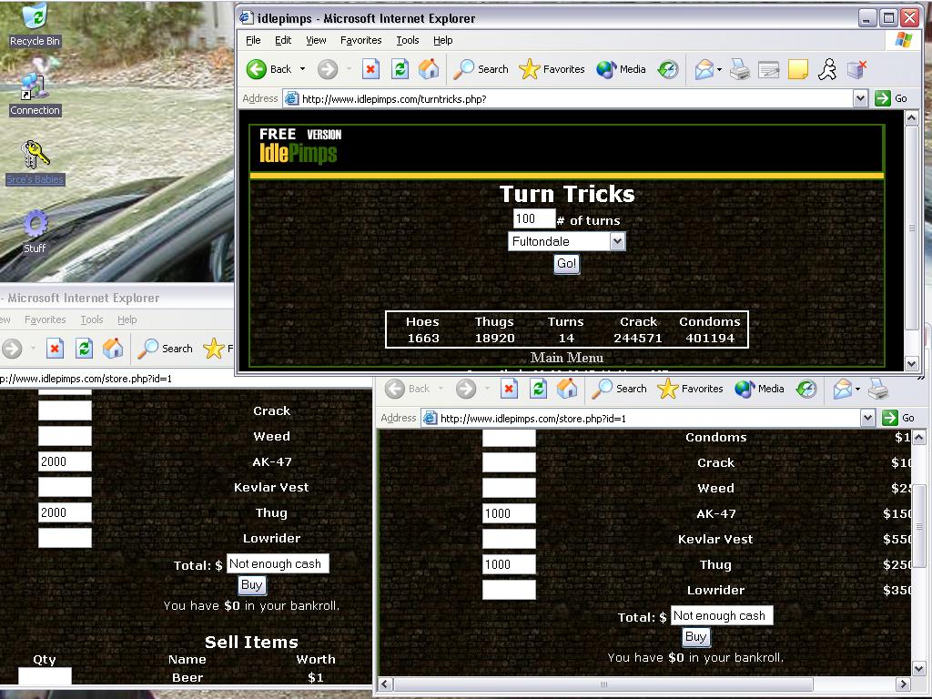 Open idlemart in another window and have the "Trick Turn" window beside the idlemart window. Put in an estimated number of supplies into idlemart, and when you turn your tricks, hit the buy button in idlemart. This way nobody can GANK your cash.