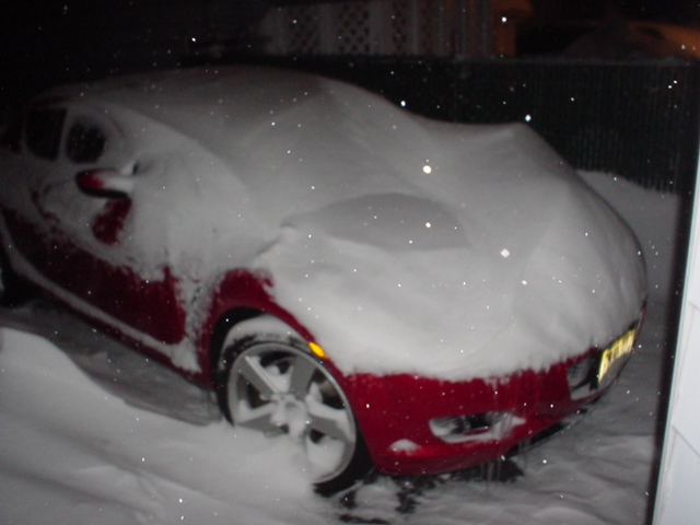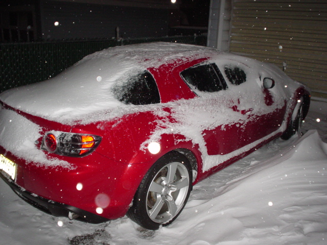 Here is a picture of my Rx8 weathering the storm in my driveway. Lucky I have a 4x4 back up vehicle and the Rx8 just waits until this storm finishes.
