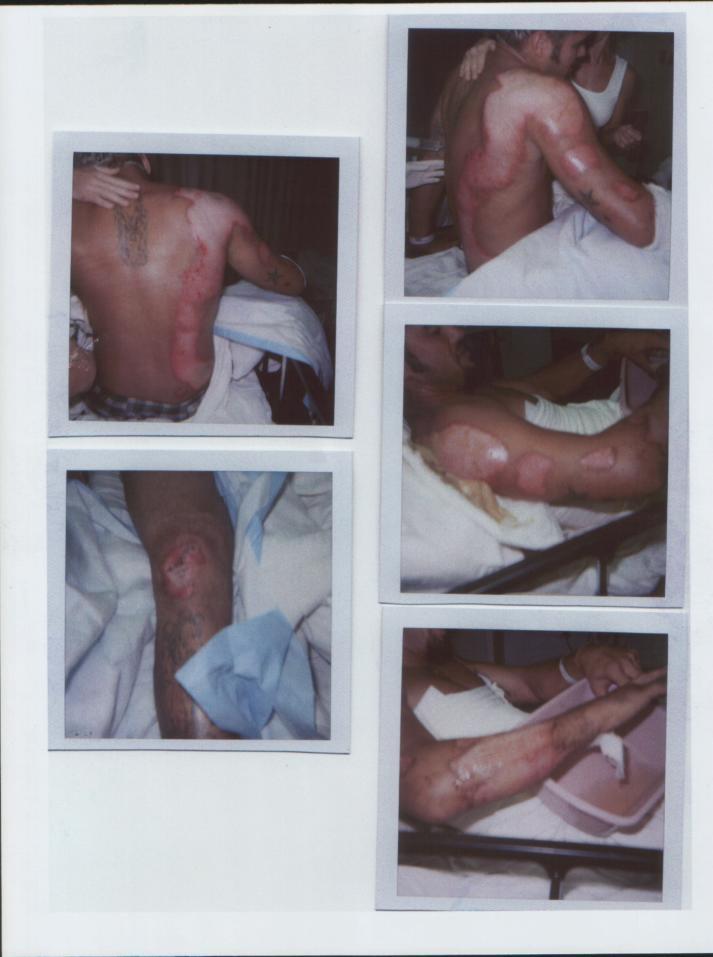 He is in a special whirlpool for burn victims right now. He has what would be classified as 3rd degree burns all over his body.