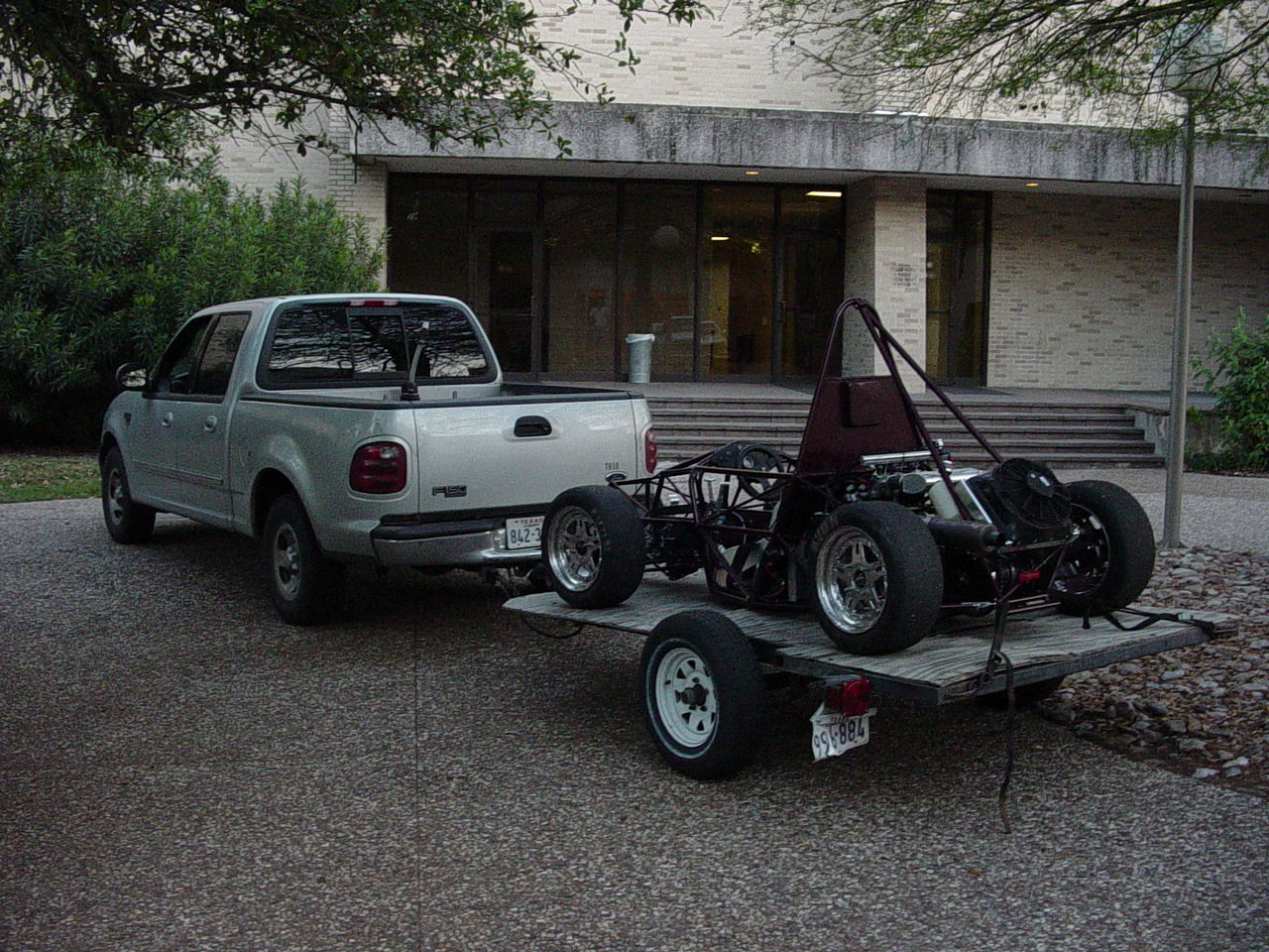 our project manager's dad owns a company called motortrike, and he is supposed to tow our car up there in a nice 18 wheel big rig. it's yellow, if we do take it. you cant miss it. if not, we will have our trailer from last year: white with a big, maroon "aTm" sign on the side.
